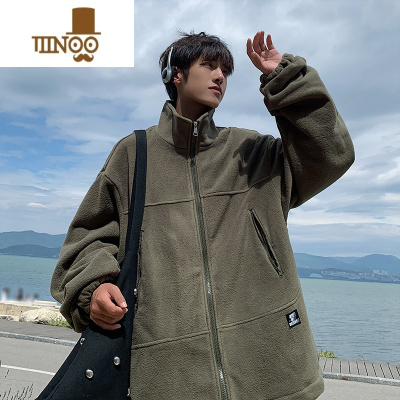 YANXU颗粒绒开衫卫衣男2023秋季新款潮流拉链口袋设计感青少年宽松外套