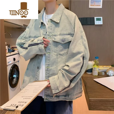 YANXU拉链款牛仔外套男修身2023新款款夹克广州新塘立领潮流牛仔衣