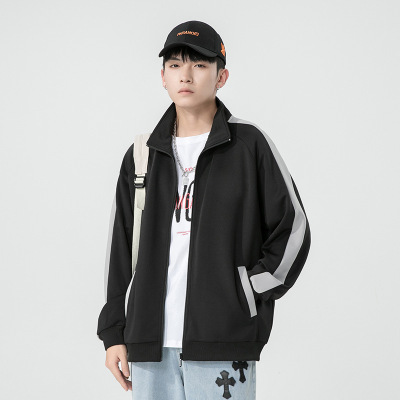 开衫卫衣男春秋季港风复古潮牌撞色纯色宽松运动拉链立领外套