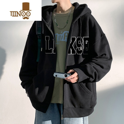 YANXU外套男新款潮牌拉链字母开衫卫衣ins港风百搭宽松连帽上衣