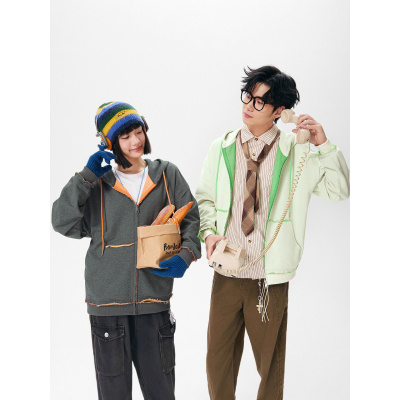秋冬新款拉链做旧连帽卫衣男士韩版情侣款宽松外套上衣潮男装