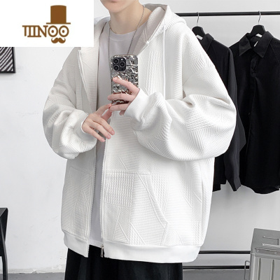 YANXU华夫格卫衣男士2023秋季新款白色宽松棒球服上衣拉链连帽开衫外套