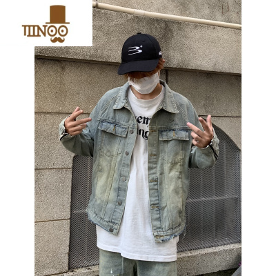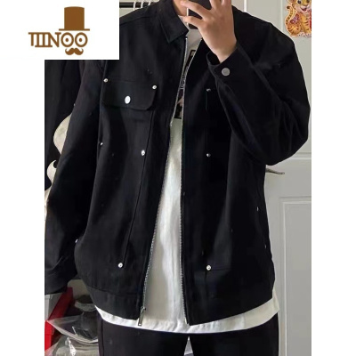 YANXU美式潮牌oversize撞钉贴片牛仔外套男高街复古嘻哈宽松拉链夹克潮