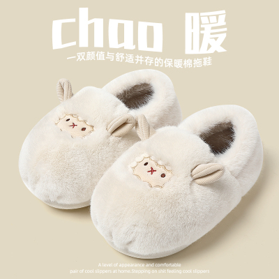 踩屎感棉拖鞋女士冬季2023新款室内可爱厚底保暖毛毛绒包跟月子棉鞋