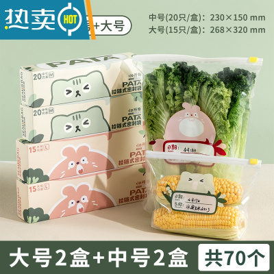 敬平保鲜袋加厚拉链式家用密封塑封冰箱专用带封口收纳袋子密实 [加厚拉链式+底部加宽]中号40+大号30(共70