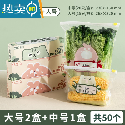 敬平保鲜袋加厚拉链式家用密封塑封冰箱专用带封口收纳袋子密实 [加厚拉链式+底部加宽]中号20+大号30(共50
