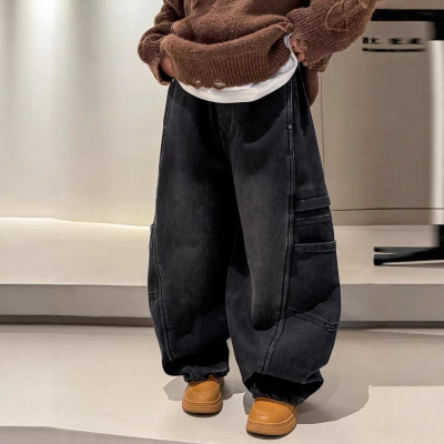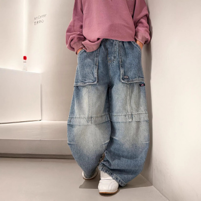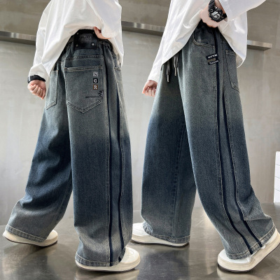 男童春装牛仔裤春秋款2026新款大儿童装痞帅宽松休闲直筒阔腿裤子