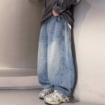 莱赛尔冰丝牛仔裤男天丝宽松直筒港风牛仔男装多色松紧垂感拖