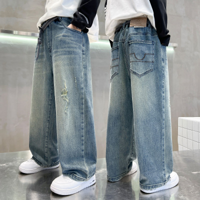 男童牛仔裤春秋款2026新款男孩春装大儿童装痞帅宽松休闲直筒裤子