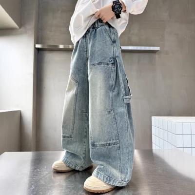 儿童装男童牛仔裤子春秋款2026新款大童春季男孩春装阔腿工装长裤