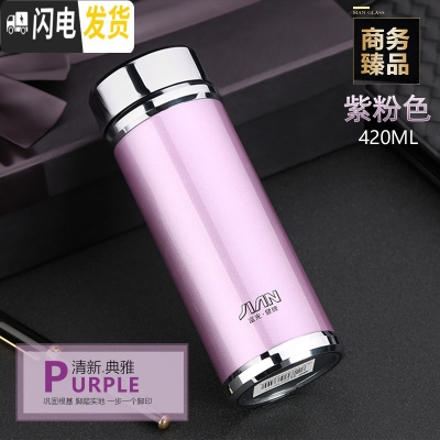 三维工匠保温杯 男女士304不锈钢泡茶杯大容量车载定制印字水杯子 紫色420