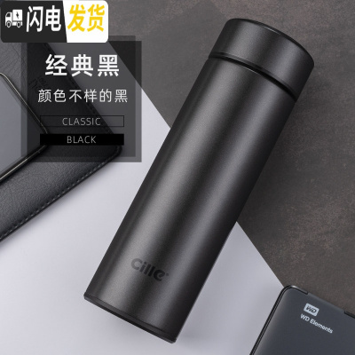 三维工匠保温杯男士不锈钢水杯女学生便携简约商务杯子大容量车载茶杯 1890黑色470