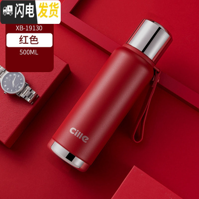 三维工匠保温杯大容量便携水杯男女316不锈钢车载水壶大号商务茶杯子 XB-19130红色500
