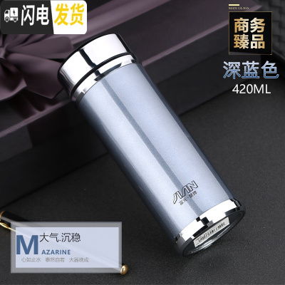 三维工匠保温杯 男女士304不锈钢泡茶杯大容量车载定制印字水杯子 蓝黑色420
