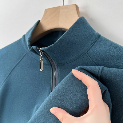 双面真德绒男士卫衣秋冬新款立领半拉链长袖保暖打底衫男