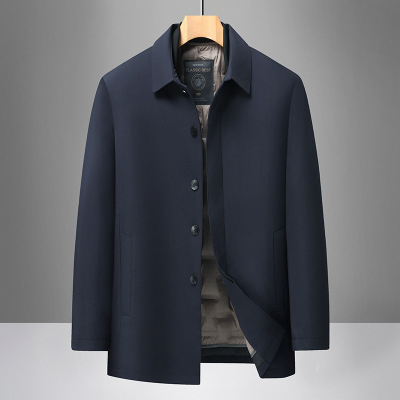 双面呢鹅绒内胆男士羊绒大衣羽绒内胆可拆卸中青年羊毛呢子中长款外套爸爸针织上衣服活里活面鹅绒内胆风衣中老年羽绒外套大码冬装