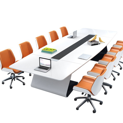 全简白色烤漆会议桌长桌简约现代大型办公会议培训长条桌