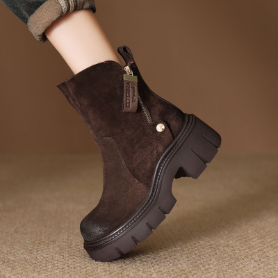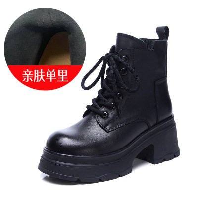 头层牛皮马丁靴女冬季新款厚底粗跟复古英伦风真皮加绒短靴