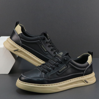 新款男士休闲皮鞋男潮流韩版时尚板鞋真皮复古小白鞋