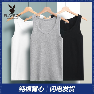 花花公子背心男士纯棉内穿夏季打底紧身跨栏白色全棉吊带运动薄DX