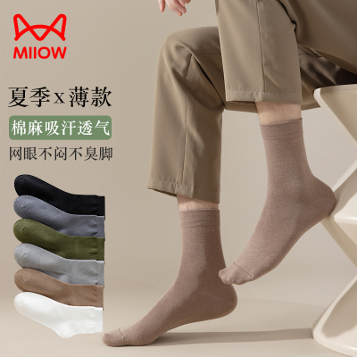 [5双装]猫人袜子男士中筒袜夏季薄款抗菌吸汗防臭无骨休闲袜男款夏天