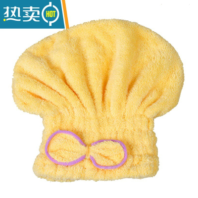 敬平很吸水~可爱蝴蝶结加厚珊瑚绒 女生擦头发洗头速干包头毛巾 姜黄色干发帽