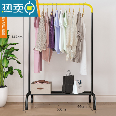 敬平晾衣架落地挂衣架折叠宿舍室内卧室学生晒衣架杆式家用凉衣服架子 60cm(简易款)黑黄色+单层置物+底座加高晾衣杆