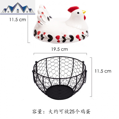 创意手绘家用陶瓷鸡蛋篮果蔬杂物筐厨房铁艺储存篮子母鸡装饰收纳 三维工匠收纳篮