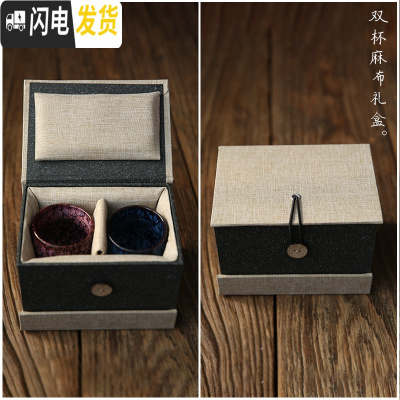 三维工匠窑变手工禅定杯禅意陶瓷钧窑开片功夫茶杯鸡蛋杯大号主人杯子 双杯礼盒(不含杯)