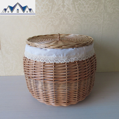 馍筐馒头筐保温带盖藤编家用水果鸡蛋篮柳条筐编织筐厨房收纳圆形 三维工匠收纳篮