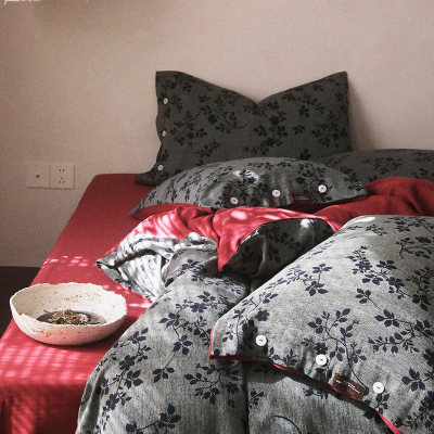 高级感新中式复古喜庆大红色织提花全棉四件套水洗长绒棉纯棉床品