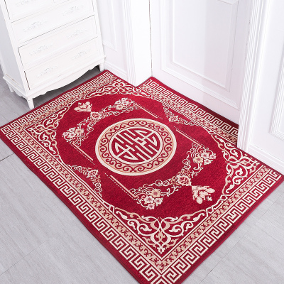 美帮汇进地垫红色喜庆家用脚垫喜字垫定制玄关卧室入户中式客厅地毯