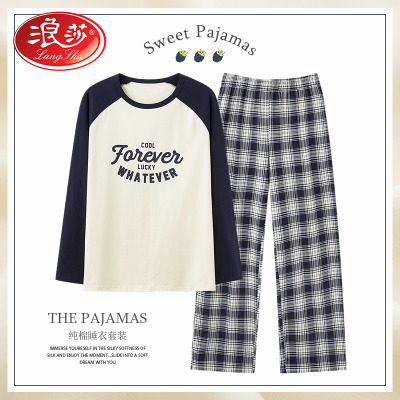 浪莎睡衣女春秋季女款纯棉长袖学生格子裤休闲可外穿家居服套装