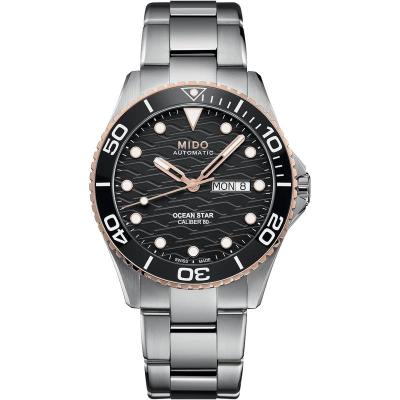 Mido男表海洋之星系列200C瑞士手表黑盘双历钢带防水表自动机芯长动能