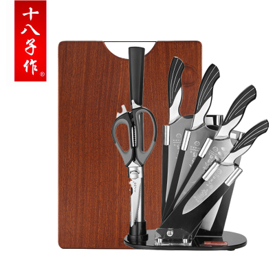十八子作AS1309雀之翎7件套+ZBL005乌檀木砧板刀具套装厨房304不锈钢锅铲汤勺厨具组合阳江家用菜刀套装全套