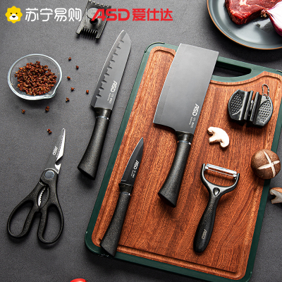爱仕达(ASD) 全套厨房刀具套刀 不锈钢厨房菜刀家用不锈钢切菜刀多功能剪刀切片刀 国产不锈钢7件套 RDG07B2WG
