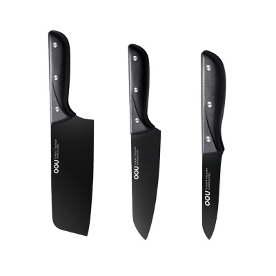 OOU!黑尚3件套 刀具组合国产 全套厨房刀具 套装家用切菜刀水果刀厨师刀 不锈钢 三件套 耐磨抗氧化 锋利顺手