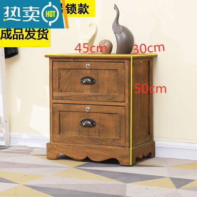 敬平简约床头柜带锁卧室小柜子复古储物柜实木客厅收纳柜抽屉式整理柜