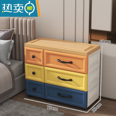 抽屉式收纳柜儿童玩具储物柜衣物整理柜家用沙发柜现代简约床头柜 三维工匠