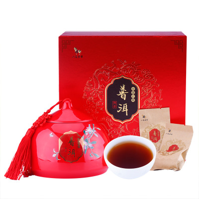 八马茶叶 云南原产地普洱熟茶黑茶小如意瓷罐普洱散茶礼盒装120克