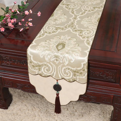 新中式古典玉桌旗茶几长条布艺中国风桌布床柜旗电视柜盖布 如意浅绿 34*150适合桌长90-100CM