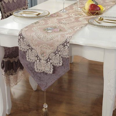 美帮汇白芷蕾丝桌旗尖角美式电视柜盖巾欧式餐桌布艺色长条 白芷丁香/3天发货 36*250cm