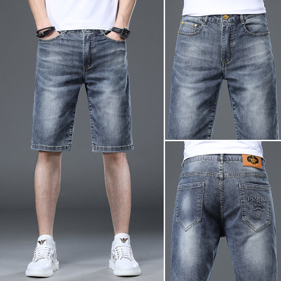 潮牌印花短裤男夏季新款中裤百搭五分裤修身弹力直筒牛仔裤男