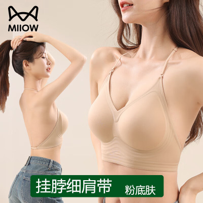 猫人粉底液隐形内衣女士无痕吊带一体美背性感细肩带露背挂脖文胸