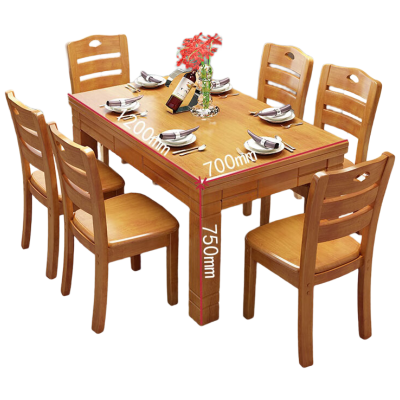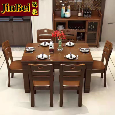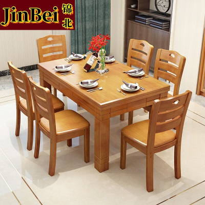 锦北餐桌椅组合新现代中式小户型西餐饭桌子 1.2榉木1桌6椅
