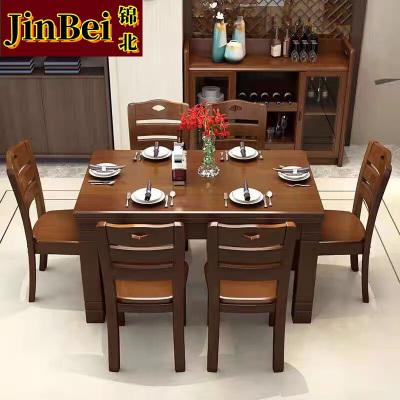 锦北餐桌椅组合新现代中式小户型西餐饭桌子 1.3胡桃1桌6椅