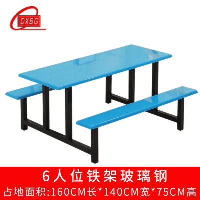 DXBG不锈钢餐桌连体餐桌椅组合学校食堂员工小吃店快餐桌椅4人6人8人6人位铁架玻璃钢餐桌