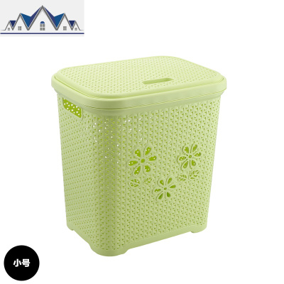 大号方形塑料仿藤编脏衣篮带盖洗衣篮脏衣服收纳筐脏衣篓收纳篮 三维工匠