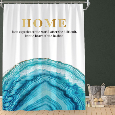 北欧风大理石浴帘卫生间防水加厚防霉轻奢隔断帘子浴室免打孔套装