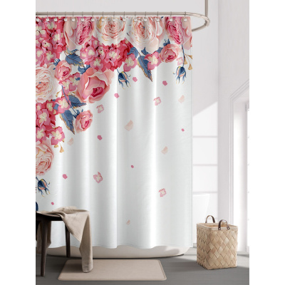 粉色少女浴帘浴室防水布洗澡间隔断挂帘淋浴房洗浴挡水帘子免打孔